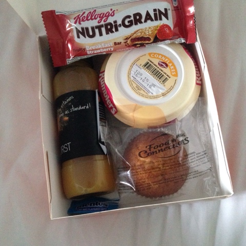 Breakfast was delivered exactly when we ordered it and was really good, personally we like to have a cooked breakfast when away, but this was certainly adequate and was enough to keep us full til lunchtime. At £4.95 they are a little pricey considering you could have purchased all items individually for less, but they are extremely convenient and make a good breakfast choice.