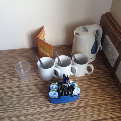 The hospitality tray was well filled and contained everything you would expect, tea, coffee, decaf coffee.