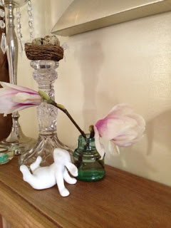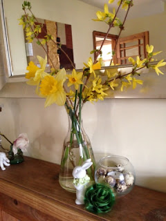 This year I thought I'd change the spring mantle up a bit I still wanted to keep the rabbits and some of the eggs from Easter but I also wanted a more subtle effect.