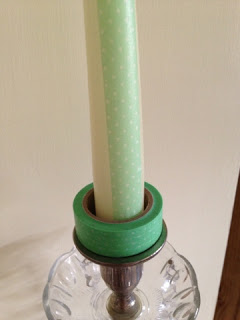 I felt that the ivory taper candles got lost against our still unpainted hearth wall, so I used some Cath Kidston washi tape to add a bit of colour. The little fame has also been given the washi treatment, it was so quick and easy to do.