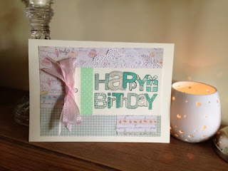 The first card I made just didn't work, I used a Manila tag and stamped in forest green to compliment the papers I had chosen, once I put it together, instantly I could see that it didn't