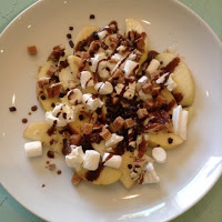 I was in 2 minds as to whether T would have any apple nachos but in the end I let him, I also let him select his own toppings (all of them!) he was really good, ate the apples, nuts and marshmallows but left anything still in his bowl.