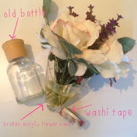 I used a bit of washi round the wood on the bottle and then put the flowers in - voila, a new pretty flower arrangement! I am now on the lookout for a reasonably priced Chanel No5 bottle as I think that will set them off nicely, but for now this is a great improvement.