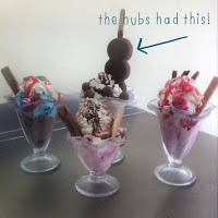 Our toppings - crushed up meringue nests, fudge pieces, chopped pecans, mini marshmallows and chocolate sprinkles.