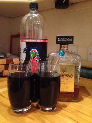 As a little treat I served this with a lovely alcoholic dr pepper, which I made by mixing disarono and Pepsi max, 25ml disarono to 250ml Pepsi max, I have seen versions online that also add beer but I'm happy with the taste without it.