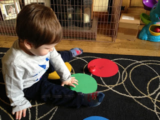 During a pinning session one day I came across this pin for playdough filled balloons and I thought that I could go one stage further and create coloured mats for Thomas to colour match.