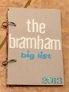The cover didn't come out quite as expected, as I was supposed to call it 'the bramham's big list' but I didn't have any smaller white letter stickers and the idea for this project was to use up existing stash, I think it's turned out ok and if I decide further down the road to change it I will and that will be fine! What you can't see is that the cover is made from a cereal packet, I love the shade of grey that's on the inside, not sure how and what I will do to cover up the inside but you'll be the firsts to know!!