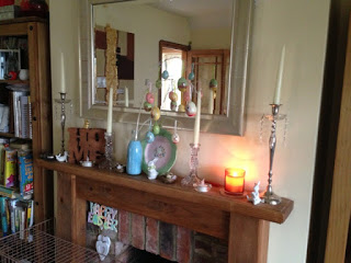 I felt that the ivory taper candles got lost against our still unpainted hearth wall, so I used some Cath Kidston washi tape to add a bit of colour. The little fame has also been given the washi treatment, it was so quick and easy to do.