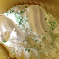 I wanted something that wasn't too messy but that would be fun, so we tried a bowlful of shaving foam with popping candy. It's no secret that T loves shaving foam and as a 'clean' 'non food' messy play it ticks my boxes too! I had some popping candy hanging around the house and so we added that into the mix.