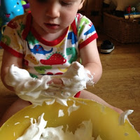 NOTE: I never leave T unattended during our sensory play time as I often use things that he could put in his mouth, I am lucky that he rarely does this. On this occasion he only did it because he copied me and didn't understand pretend eating. I'm pleased to say that he's now got the hang of pretending to eat.