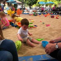 I thought that ice cream sundaes would be a great idea for a sensory box and so added some cotton wool balls as there weren't enough pom-pom's to fill the bowls, I also gave him some ice cream cone plastic glasses that I had in the cupboard and an ice cream scoop. T had a great time scooping up and making sundaes.