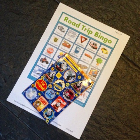 Travel bingo which I found online here the links don't work, but if you click on the picture you can print that off nicely! I added stickers and put it on a clipboard to make it easier for him.