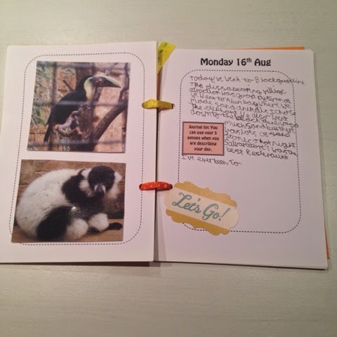 Each night the children had some down time to write in their journals, they left spaces for any photo's that they wanted to include and used post it notes to a mark where photos should be.