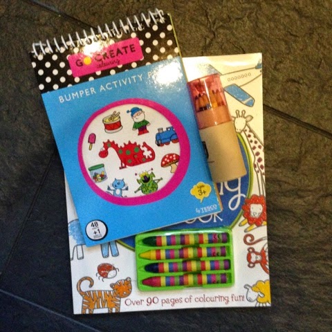 'New' colouring and activity books and colouring pencils.  Whilst these are not strictly new, T hasn't used them yet so they will be fresh and exciting for him. I NEVER let T use felt tips in the car, colouring pencils and wax crayons don't leave marks!