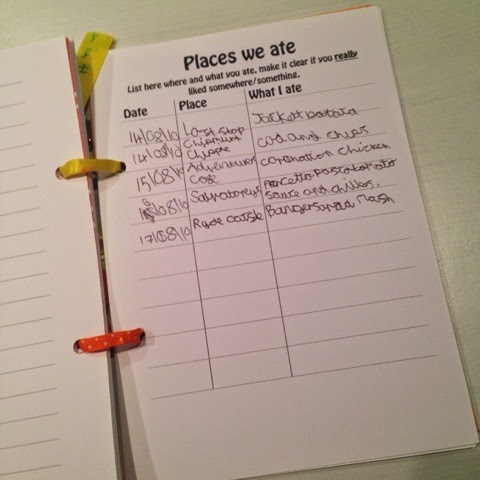 In this particular journal I included a quiz and a map with stickers to denote where we had visited.