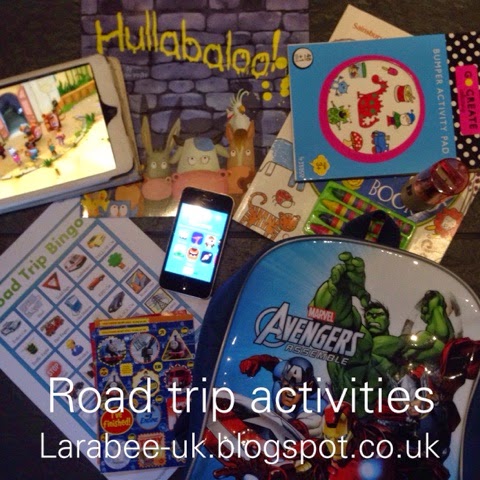 There are a million and one things you could put in a child's road trip bag, but we stuck to our magic number 5 and put together a bag of things for T to do if he got bored on the journey to Bluestone.