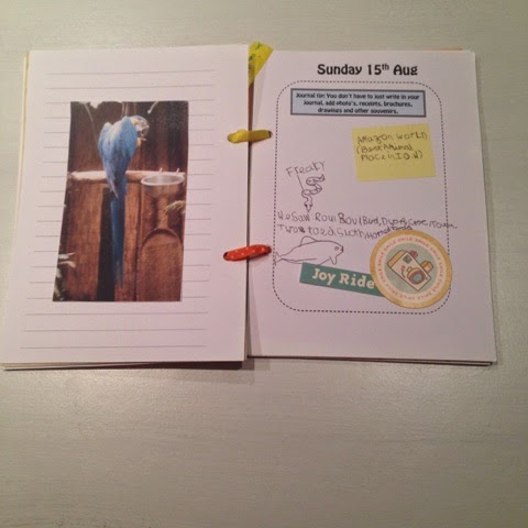 I created the main book for each of them, provided some stickers, patterned paper, cards etc all in the envelopes in the pages, so that they could create a a record of our trip (we had also created similar more basic scrapbooks for previous holidays)